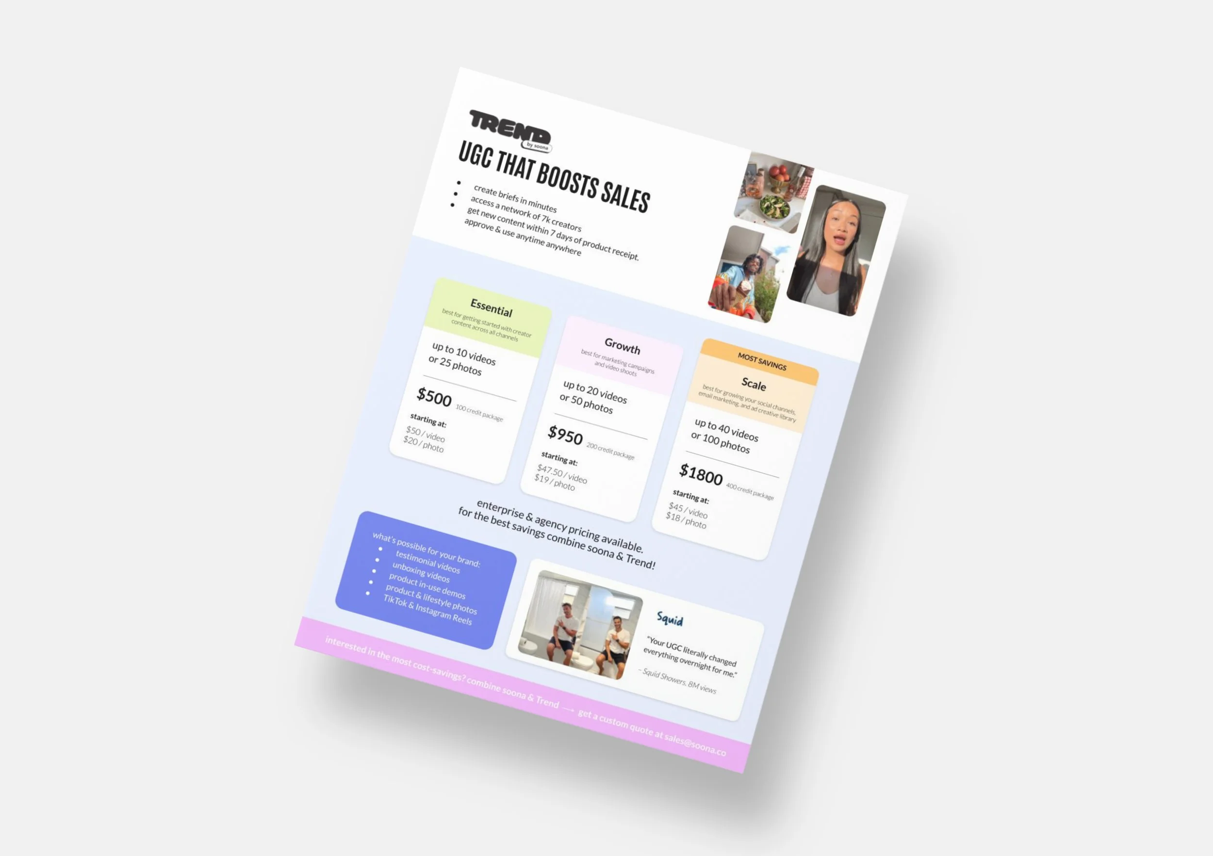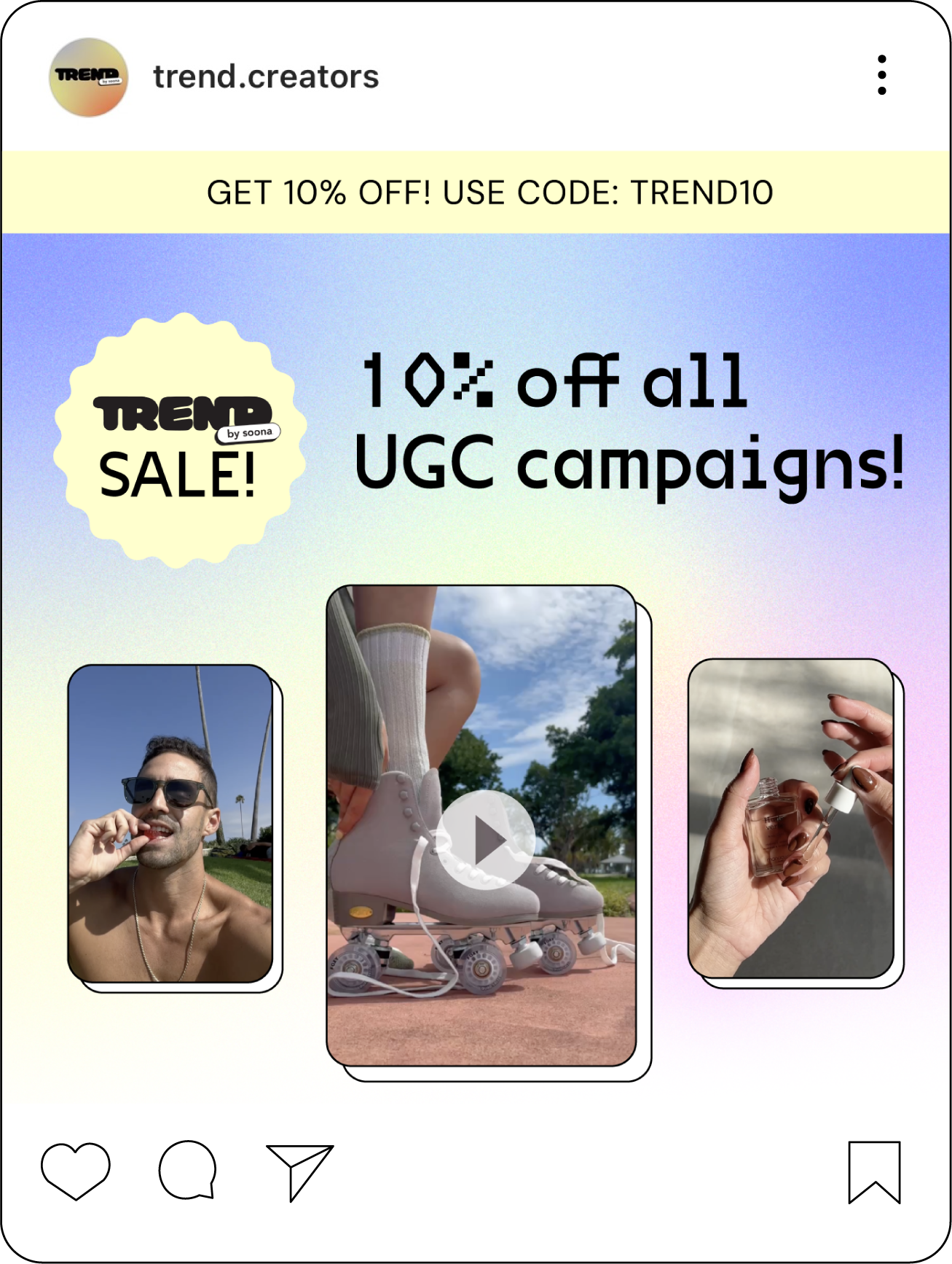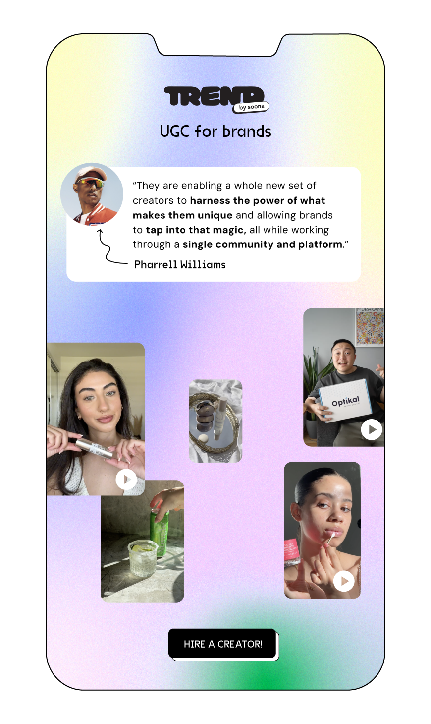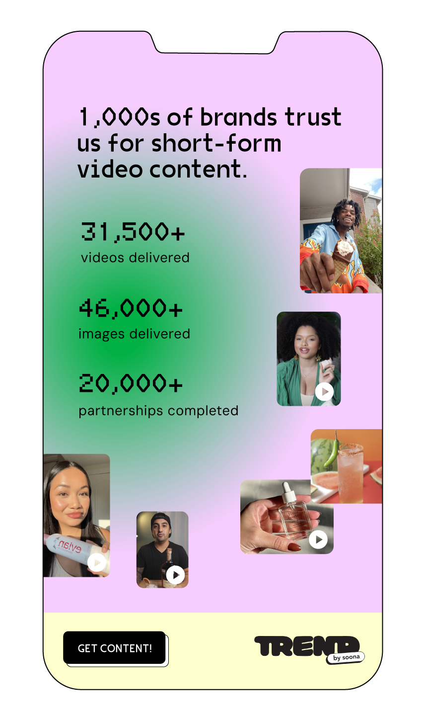 When soona acquired Trend in 2023, we maintained two separate brands to ensure client use of both platforms stayed consistent. As the in-house graphic designer at soona, I also gained responsibility for Trend's branding and marketing materials. I produced digital assets for multiple Trend channels including organic social, email, and paid advertising.
